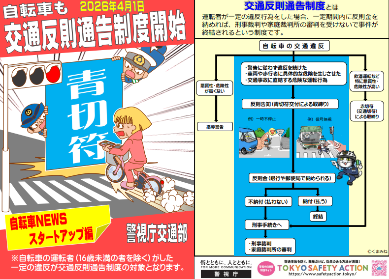 もう一点、道路交通法改正によって令和8年4月1日から、自転車の交通違反に「交通反則制度」が導入されます。