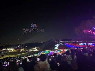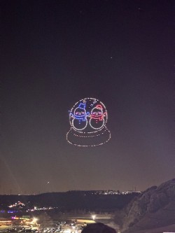 500機ものドローンが音楽と連動しながら夜空を舞い、
