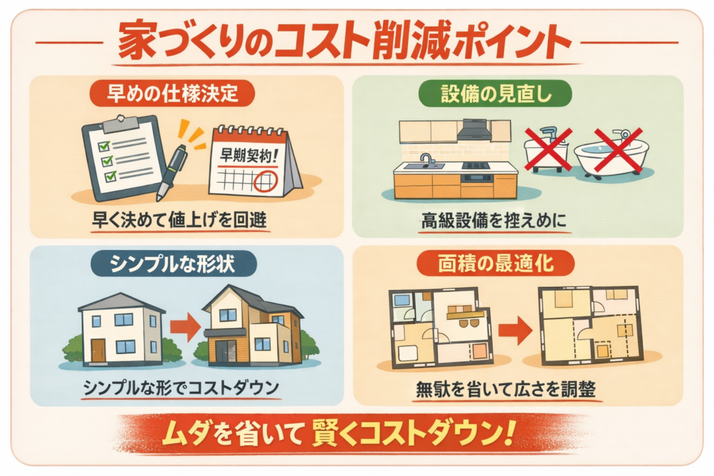 1.「量より質」の考え方にシフトする: 坪数を少しコンパクトにする代わりに、断熱性能や耐震性能といった「後から変えられない部分」にお金をかける。これが将来の資産価値を守る秘訣です。