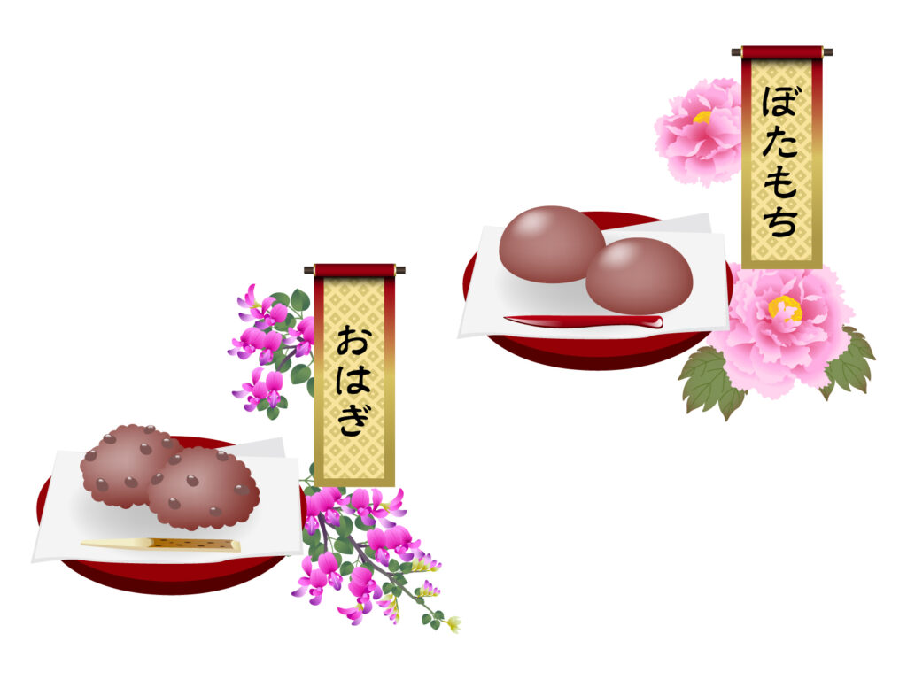 基本的に同じものですが、牡丹が咲く春は「ぼたもち」、秋の七草である萩(はぎ)が咲く秋は「おはぎ」と呼びます。