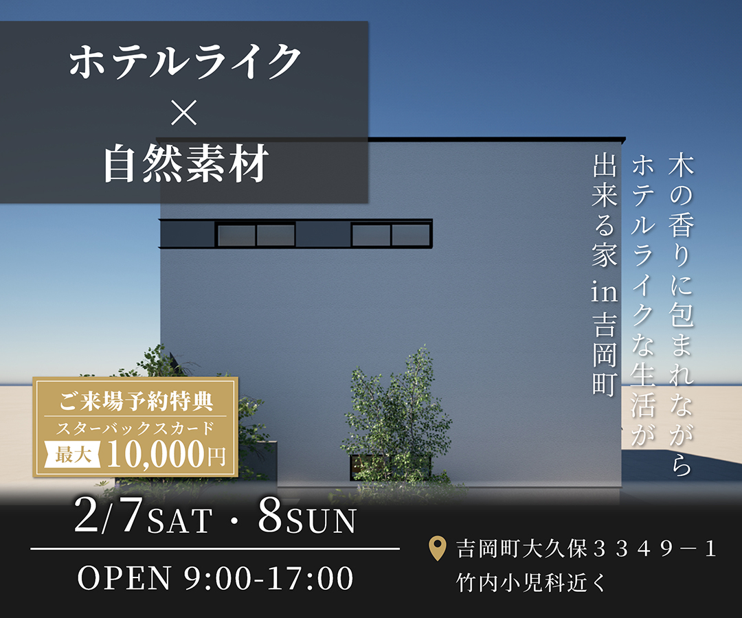 是非ご来場いただき、当社こだわりの【ホテルライク×自然素材】なお家をご体感ください。