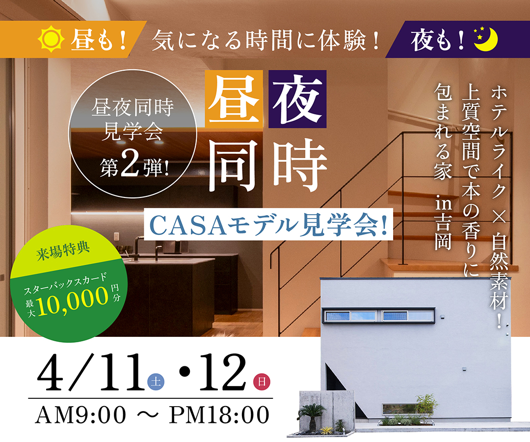【昼も夜も気になる時間に体験!昼夜同時 CASAモデル見学会】ホテルライク×自然素材!上質空間で木の香りに包まれる家 in 吉岡町