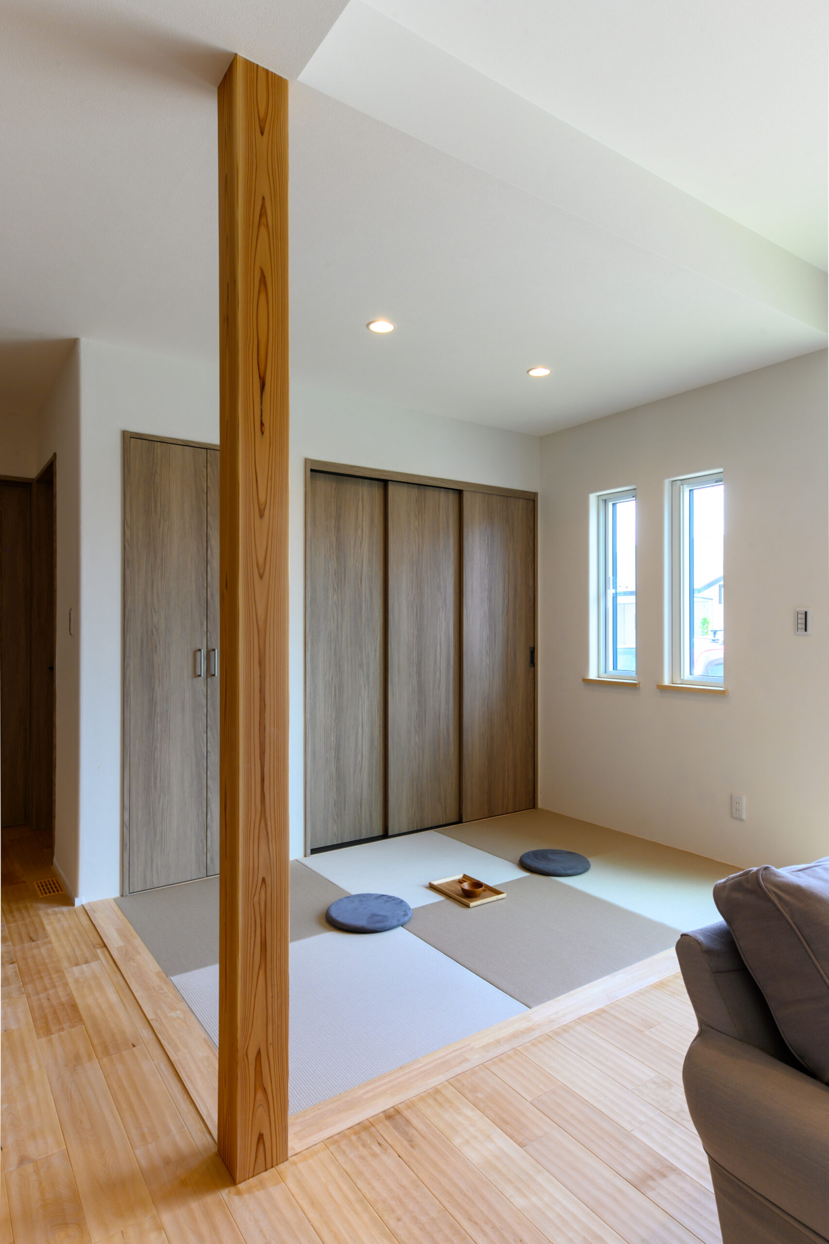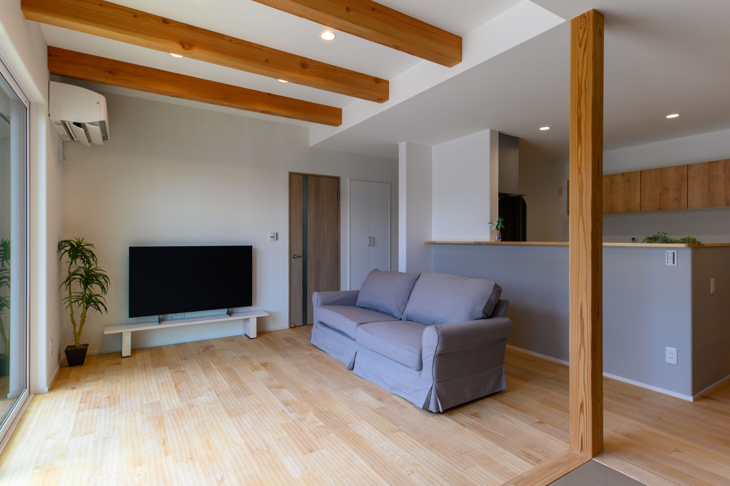 コンパクトサイズながら開放的で高性能な平屋 オープンキッチンサンルームスクラッチ加工の無垢床スタディコーナーセパレートタイプの脱衣室ランドリールーム勾配天井多目的収納書斎漆喰壁畳スペース造作テレビ台造作収納造作洗面台高性能 コンパクト平屋でありながら開放感あるリビング無垢床をあえてスクラッチ加工しています。一度体感すると離れられません。R下がり壁が可愛らしい土間玄関。奥行きもありベビーカーなども収納できます。造作WIC。平屋の動線を活かした造りです。キッチン横にダイニングを設置する事で家事ラクに一部畳スペースで空間に奥行きがでます。キッチンからお子さまの様子が確認できるメリットも◎ 前へ 一覧に戻る 次へ