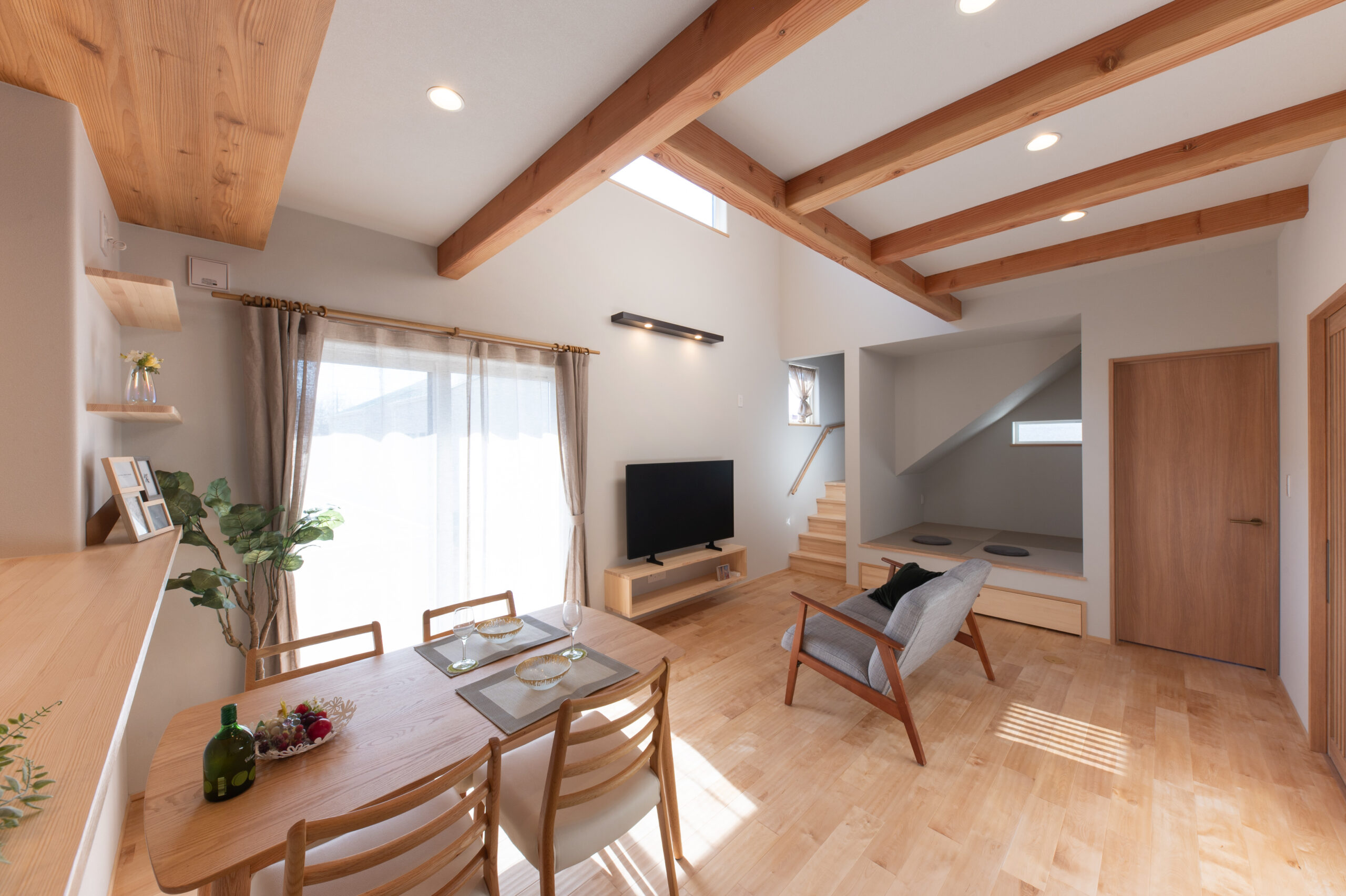 【自然素材×開放感】 優しい色合いで心地良いヌックのある暮らし オープンキッチンサンルームスクラッチ加工の無垢床セパレートタイプの脱衣室ヌックバルコニーフリースペースランドリールーム吹き抜け多目的収納漆喰壁造作収納高性能 自然な光に包まれる木の温かみあふれるリビング家族の繋がりを感じながら一人時間を楽しめるヌックはお子様の秘密基地にも洗濯やくつろぎの時間を快適にする、暮らしに寄り添うバルコニー。吹き抜けの光を感じながら歩く、やさしい時間が流れる廊下混み合う朝も困らない広さの洗面スペース。水周りは一か所に集約しています使いがってのよい広い玄関。ロールカーテンを使えば生活感を隠せますクロスで演出する趣味部屋。あなただけの空間に 前へ 一覧に戻る 次へ